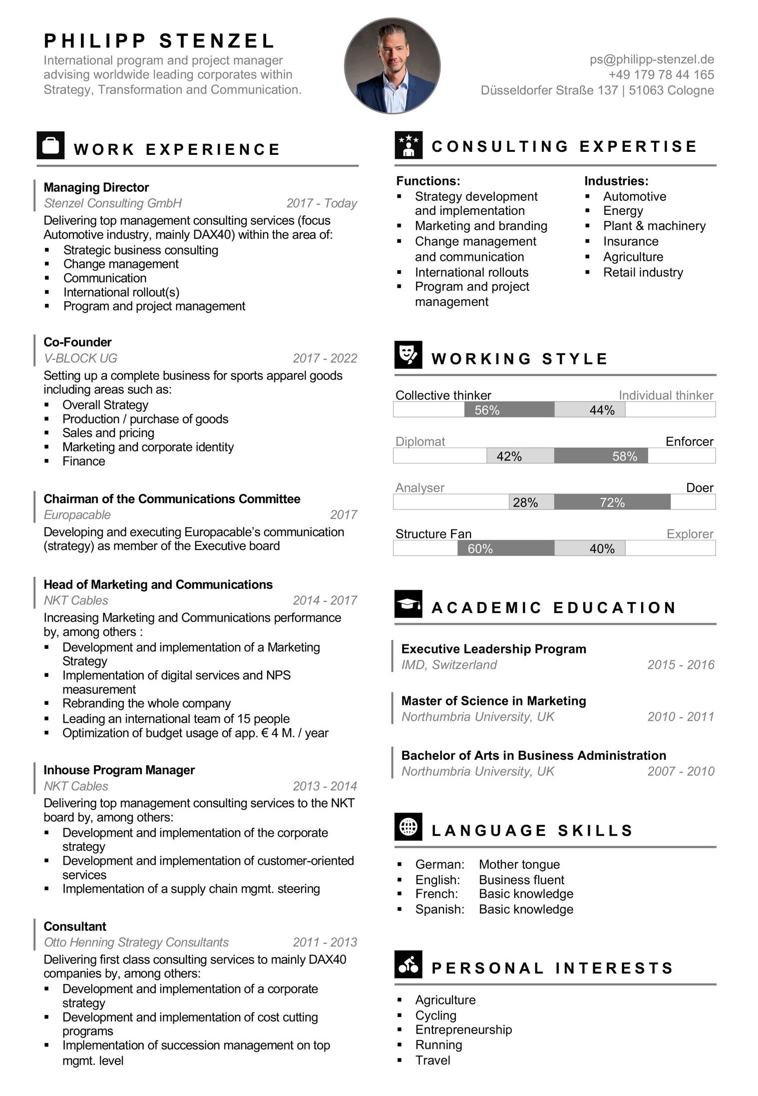 „Hello, welcome. My name is Philipp Stenzel. I am based in Cologne and I am an international program and project manager advising worldwide leading corporates within Strategy, Transformation, Marketing and Communication.“